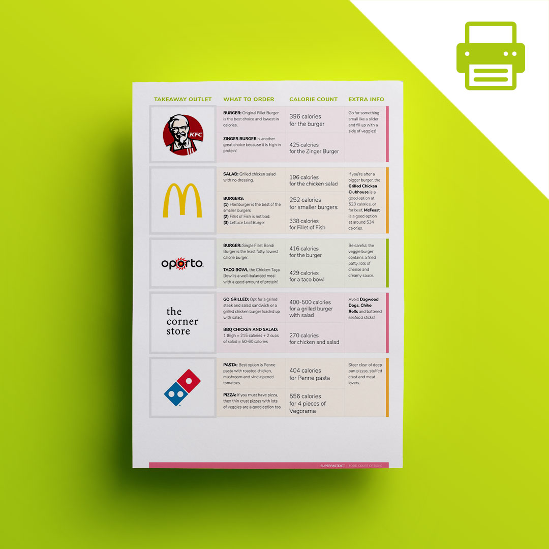 Do you ever find yourself craving fast food? Don’t worry, you’re not alone! Whether you’re just really in the mood for your favourite takeaway or you’re trying to find something quick to order, there are plenty of occasions when a quick trip to the food court feels like the only option. We’ve put together a collection of the lowest calorie, most nutritional food court options so that you can make an informed decision when making that menu choice.